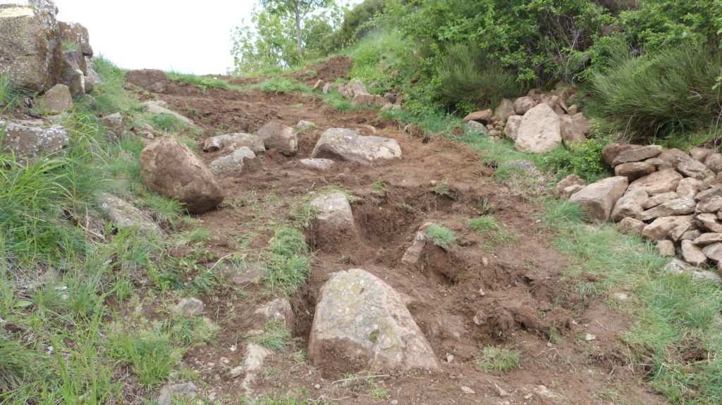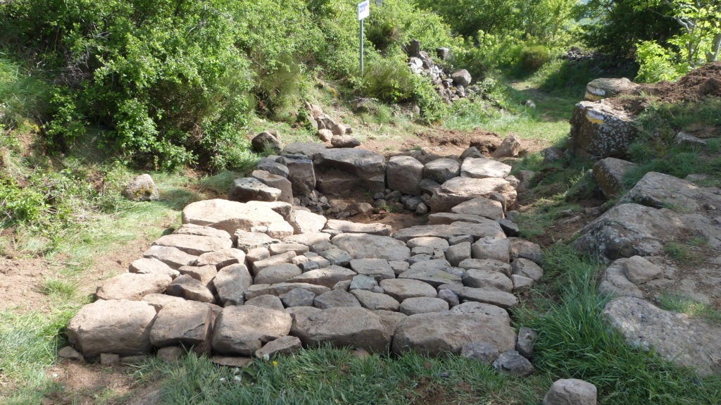 La calade annonce le début d’un sentier de découverte du site. Elle est réalisée en pas d’ânes (petite marches) pour gérer le dénivelé important.